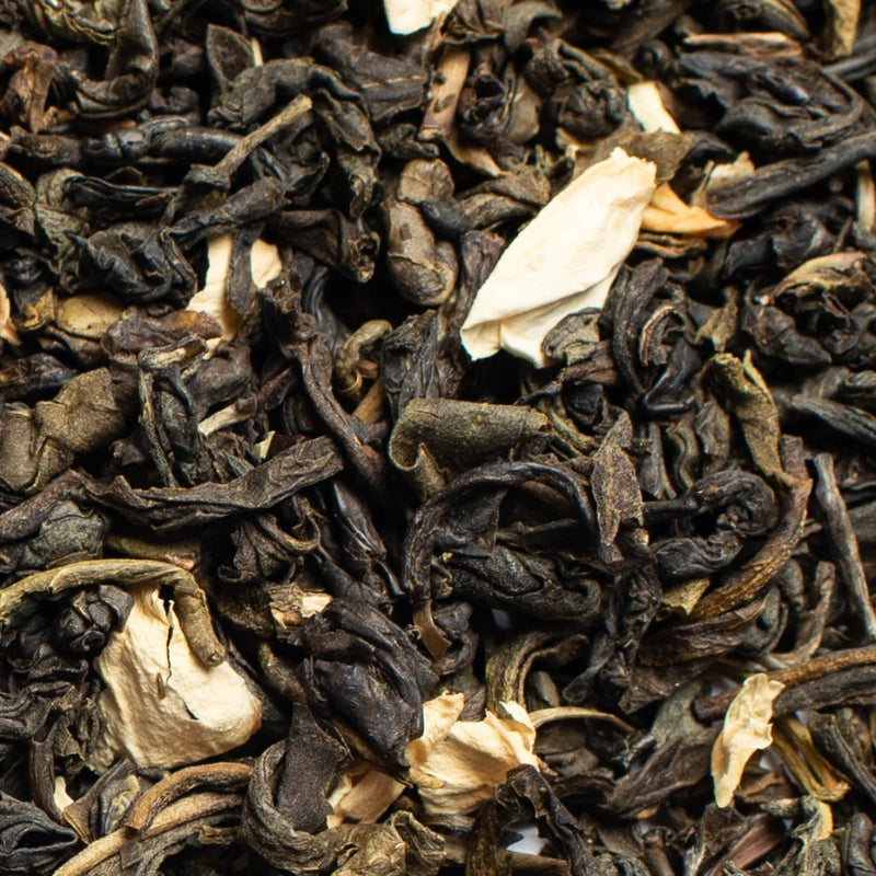 A superb example of Chinese jasmine tea from Fujian Province, featuring May picked blossoms and a beguiling floral bouquet. To make this tea, jasmine flowers are plucked and scattered over the tea leaves to release their scent. This process is repeated over several days to achieve a perfect balance of jasmine essence and bold green tea.